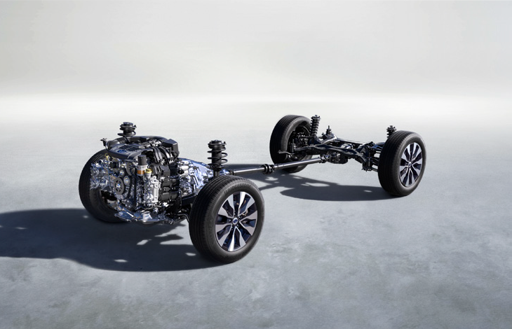 Компания разработала целый ряд технологий, позволяющих решать все проблемы системы переднего привода (FWD). Разместив двигатель вдоль оси автомобиля в горизонтальной плоскости, «Субару» достигла намеченной цели, создав свою собственную концепцию построения автомобиля: идеально симметричный по сторонам плюс система переднего привода.