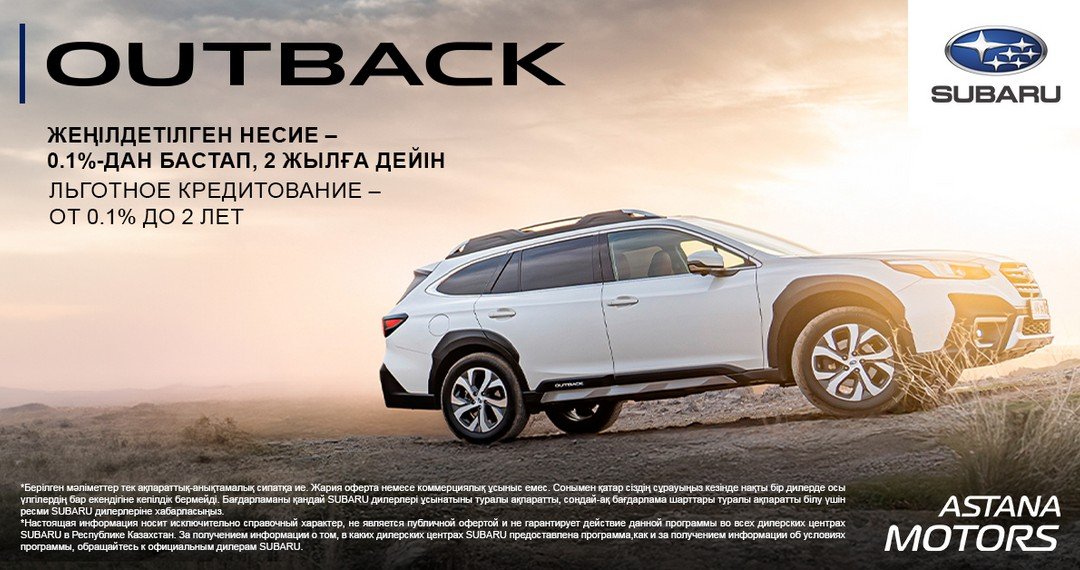 Впервые в Казахстане Subaru Outback в кредит от 0.1% до 2 лет!