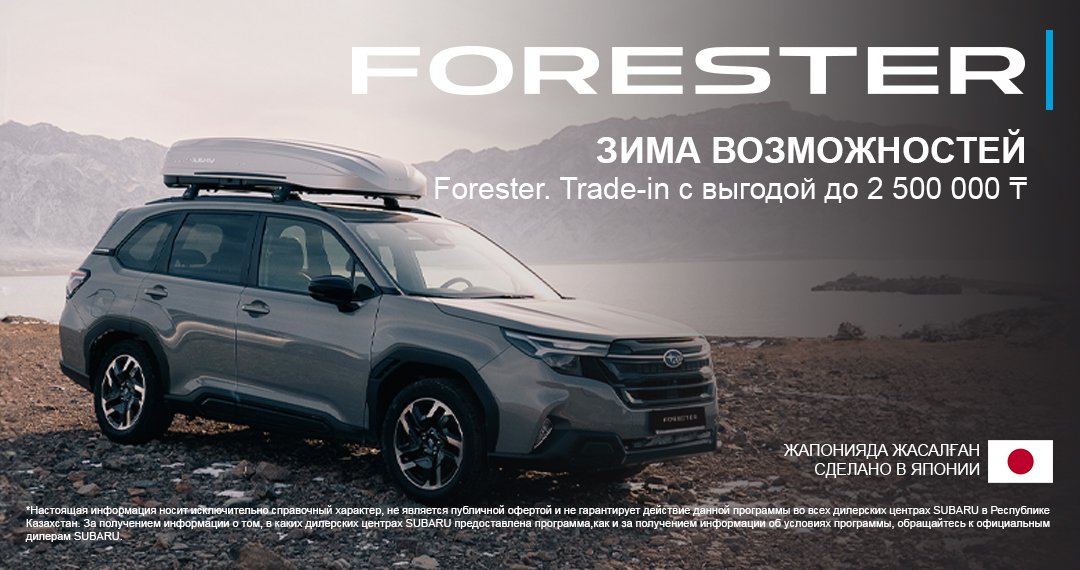 Специальная выгода до 2 500 000 ₸ на автомобили Subaru Forester по программе Trade-in